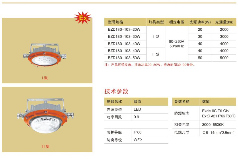 杭州BZD180-103系列防爆免维护LED照明灯(IIC)