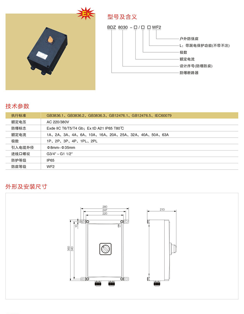 丽水BDZ8030系列防爆防腐断路器(IIB、IIC)