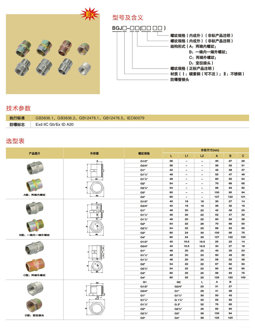 BGJ系列防爆管接头(IIB、IIC)