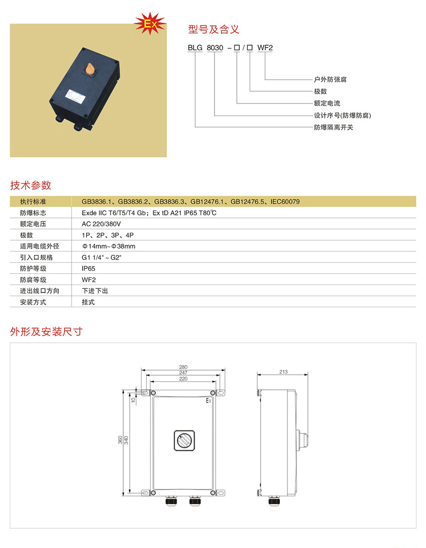 台州BLG8030系列防爆防腐隔离开关(IIB、IIC)