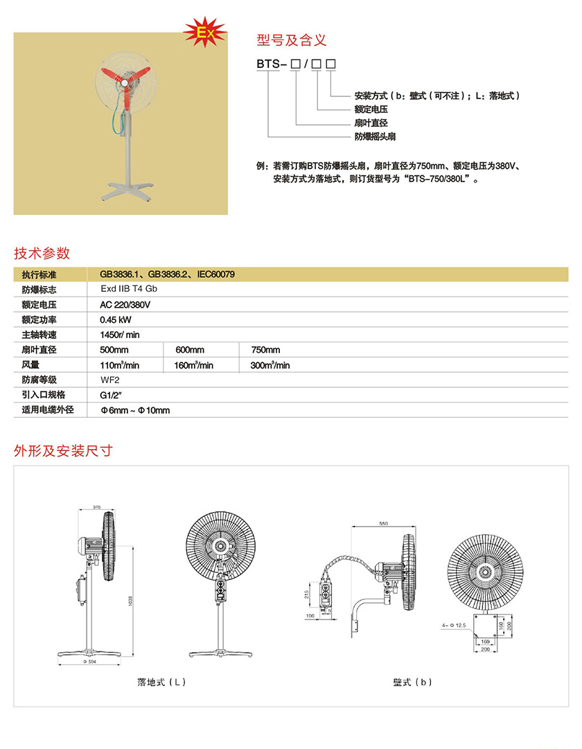 ·产品型号:BTS系列防爆摇头扇 适用环境: