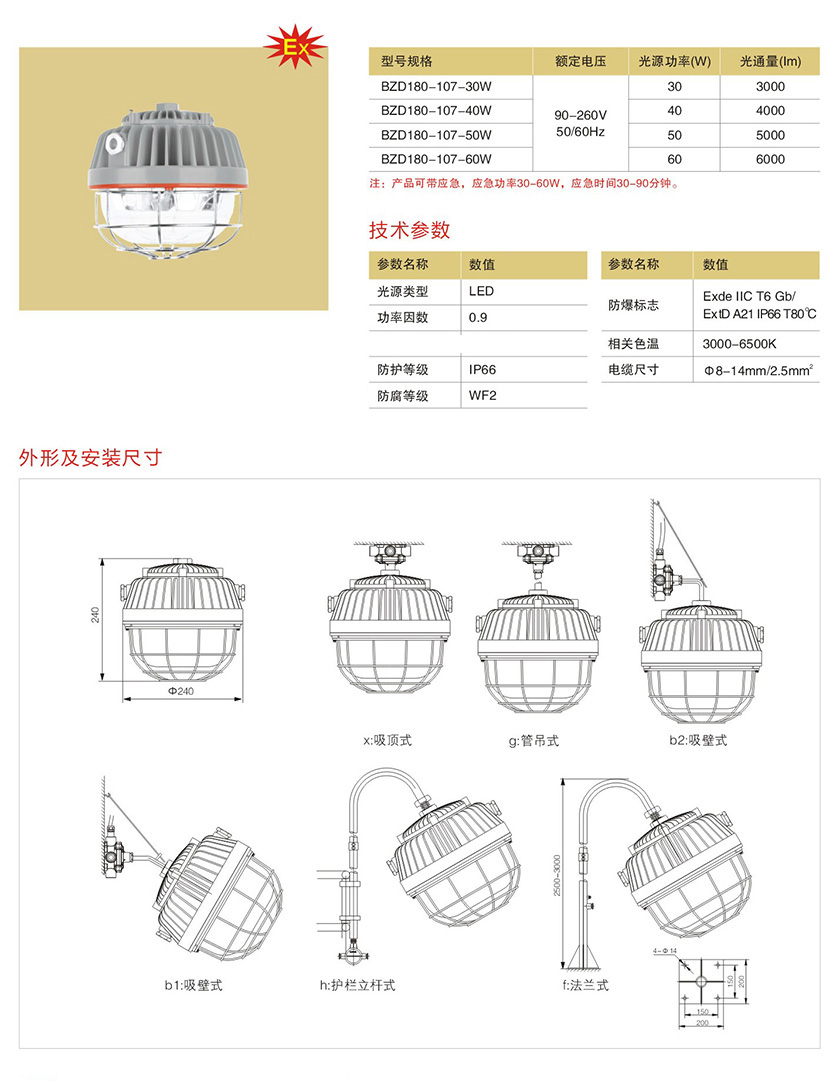 丽水BZD180-107系列防爆免维护LED照明灯(IIC)