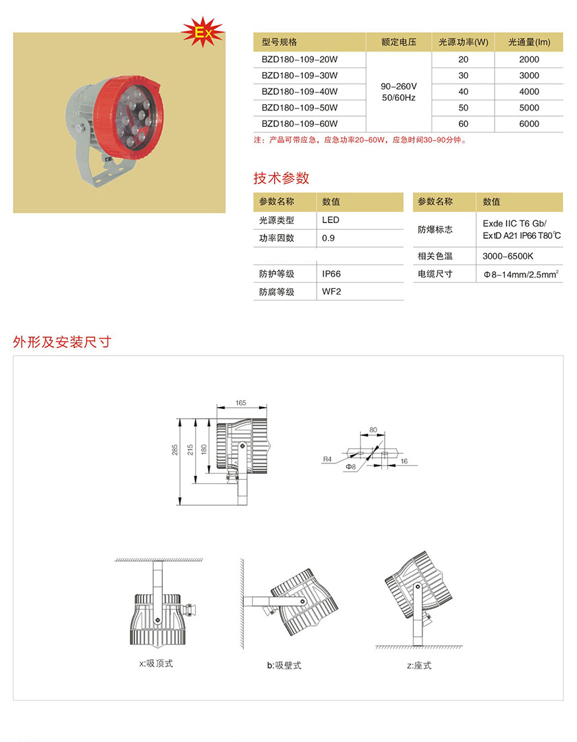 新黎明免维护LED防爆泛光灯BZD188-02 Ⅱ型
