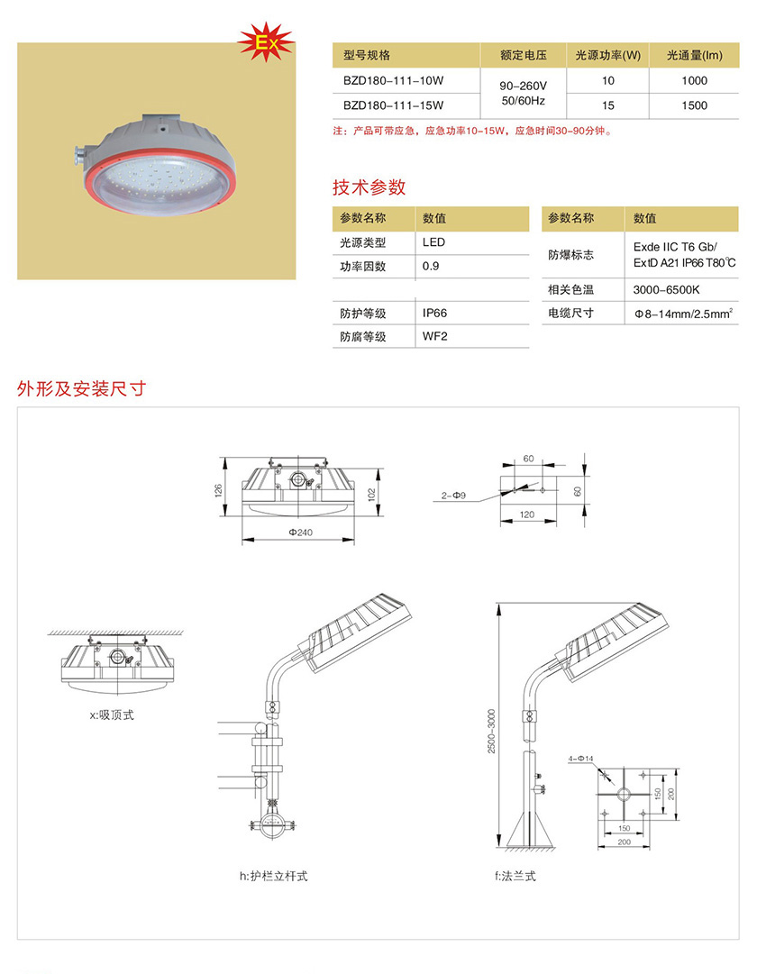 杭州BZD180-111防爆免维护LED照明灯(IIC)
