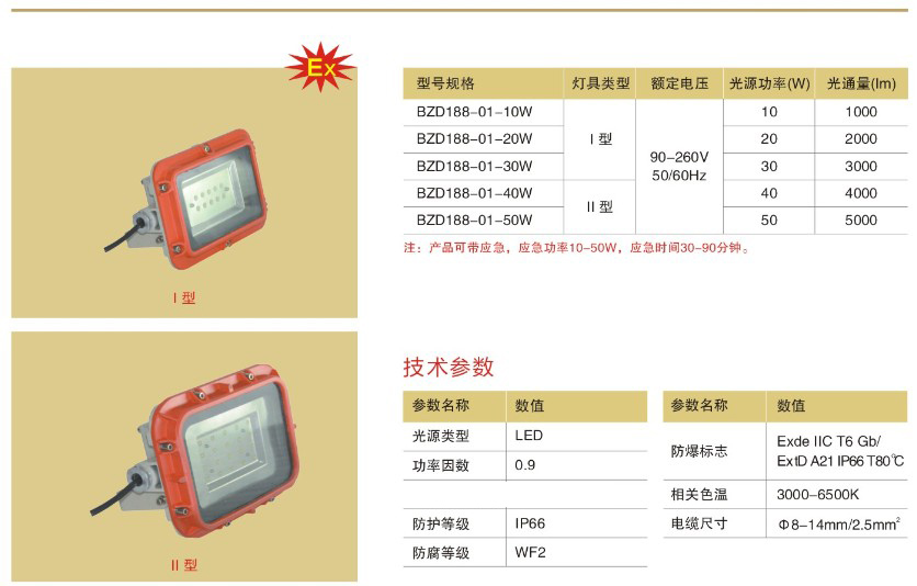 新黎明免维护LED防爆泛光灯BZD188-02 Ⅱ型