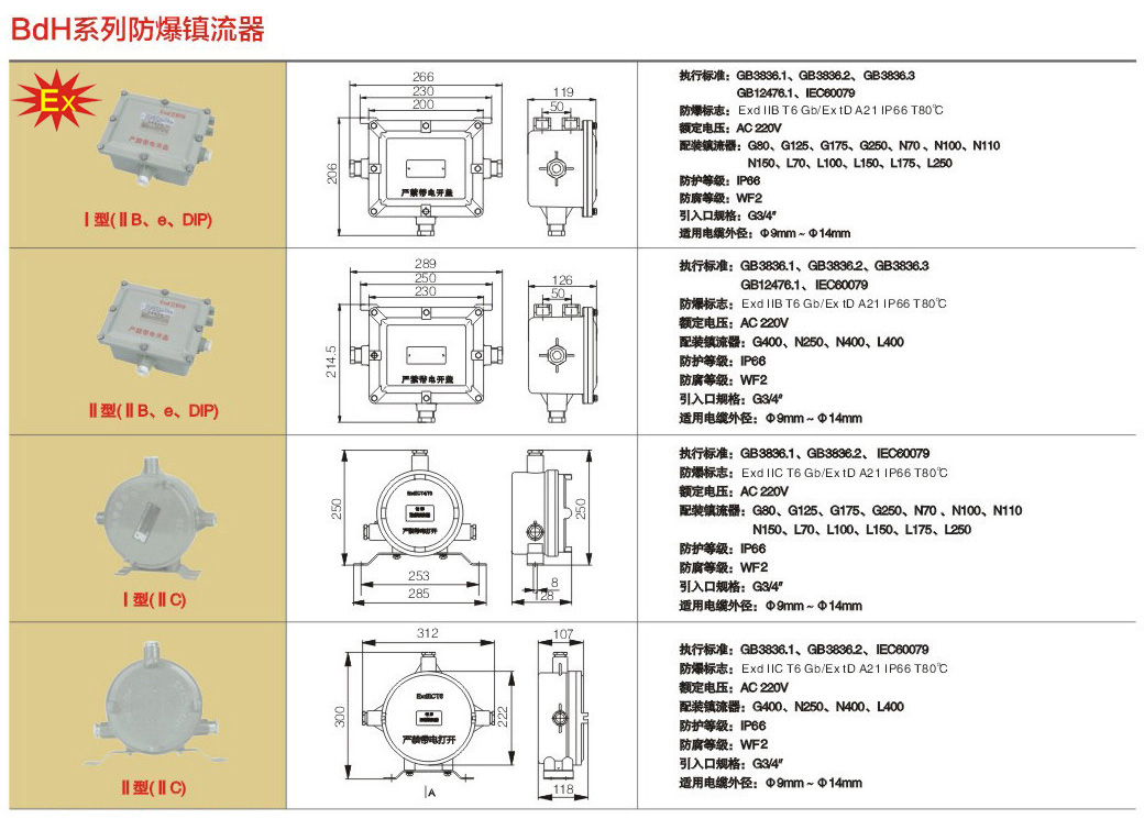 BdH系列防爆镇流器(IIB、IIC)