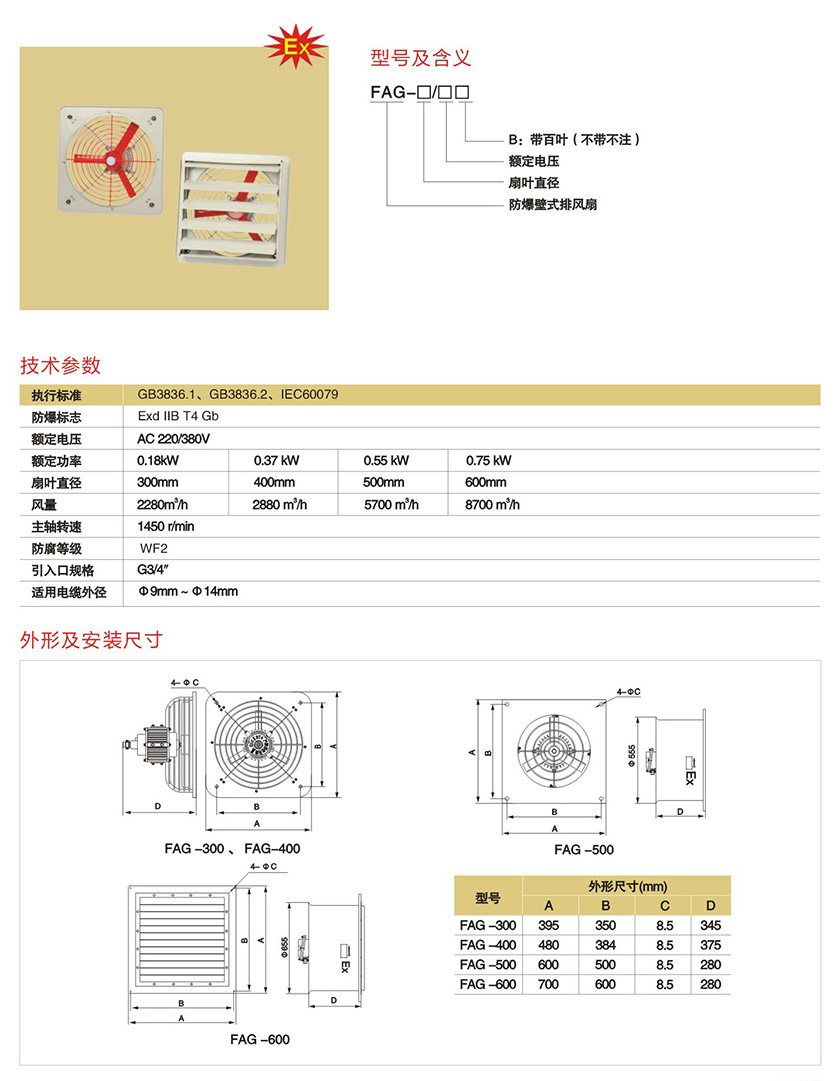 FAG系列防爆壁式排风扇(IIB、IIC)