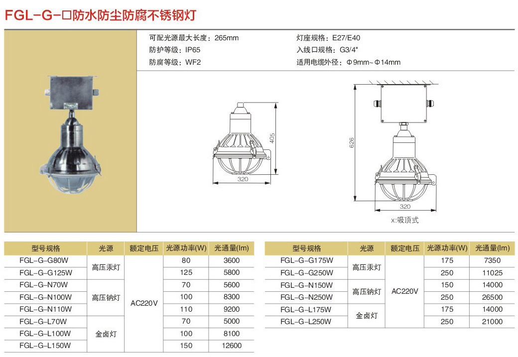 FGL-G防水防尘防腐不锈钢灯(固定式灯具)