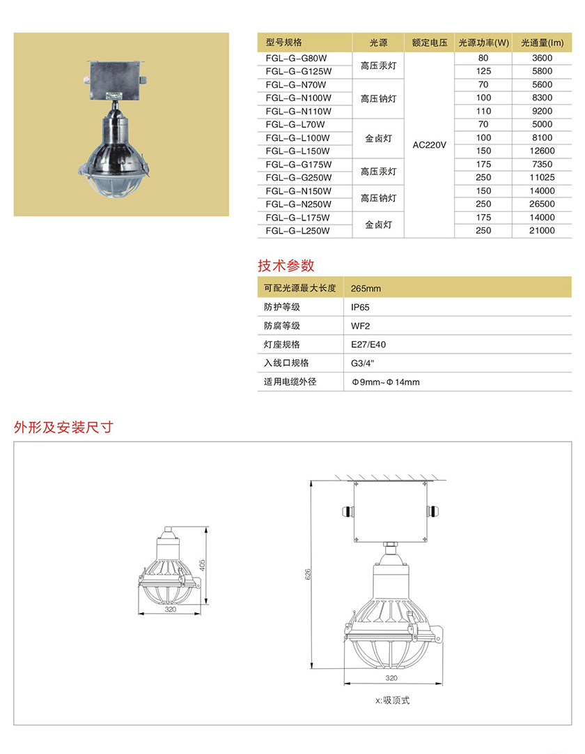湖州FGL-L-口系列防水防尘防腐照明灯