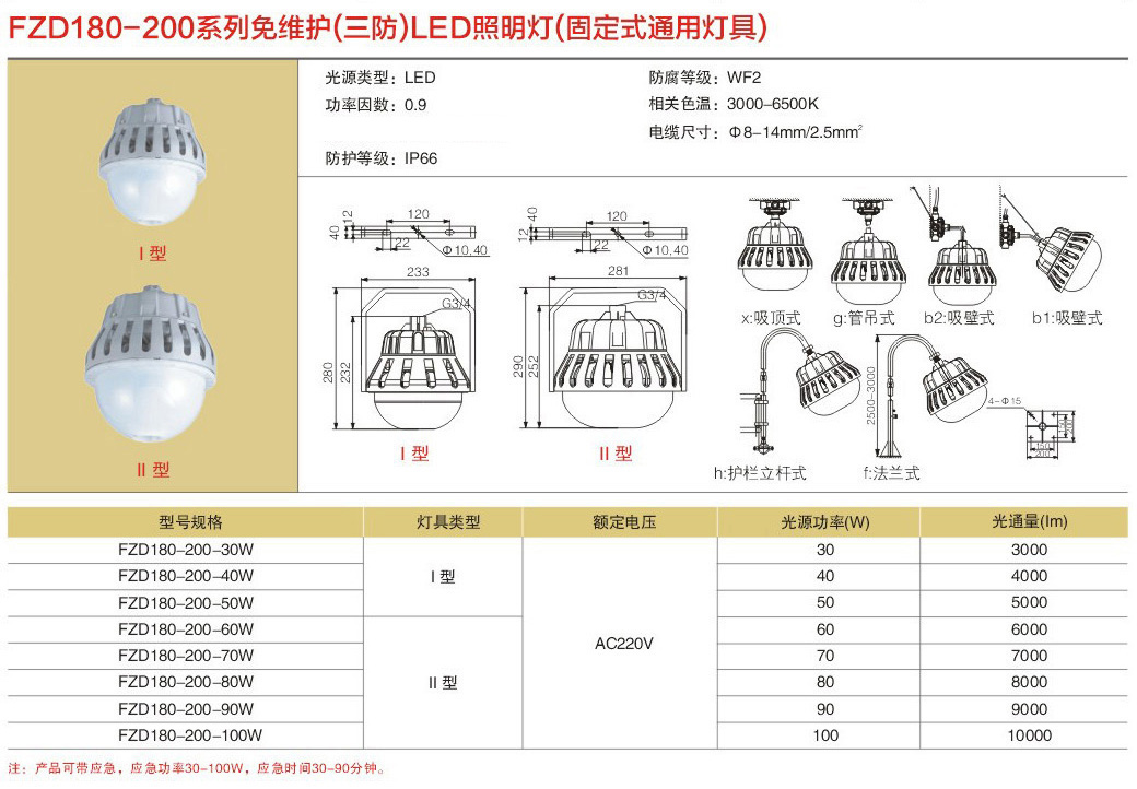 FZD180-200系列免维护(三防)LED照明灯(固定式通用灯具) Ⅰ型