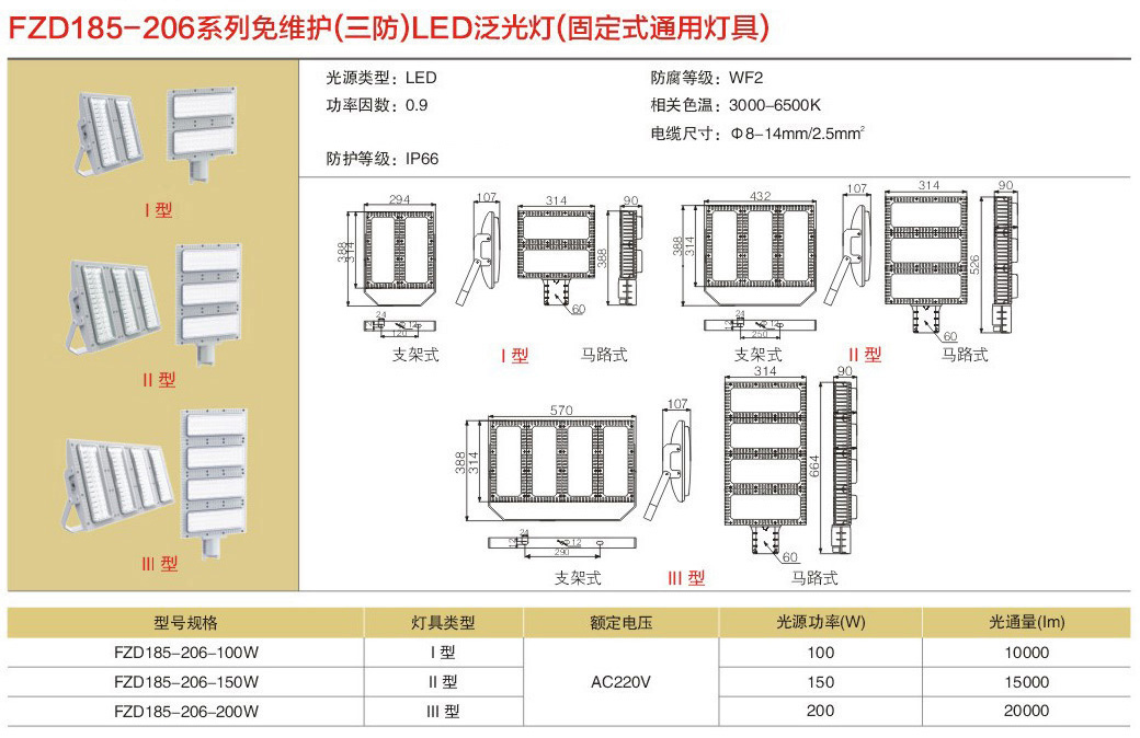 湖州FZD185-206系列免维护(三防)LED泛光灯(固定式通用灯具) Ⅲ型