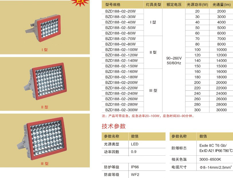 新黎明免维护LED防爆泛光灯BZD188-02 Ⅱ型