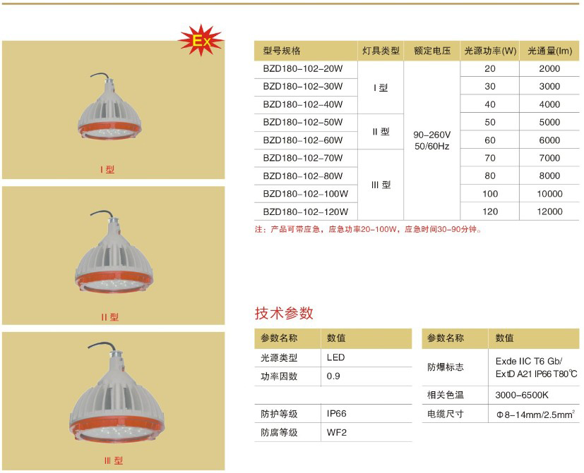 杭州BZD180-102系列防爆免维护LED照明灯(IIC)