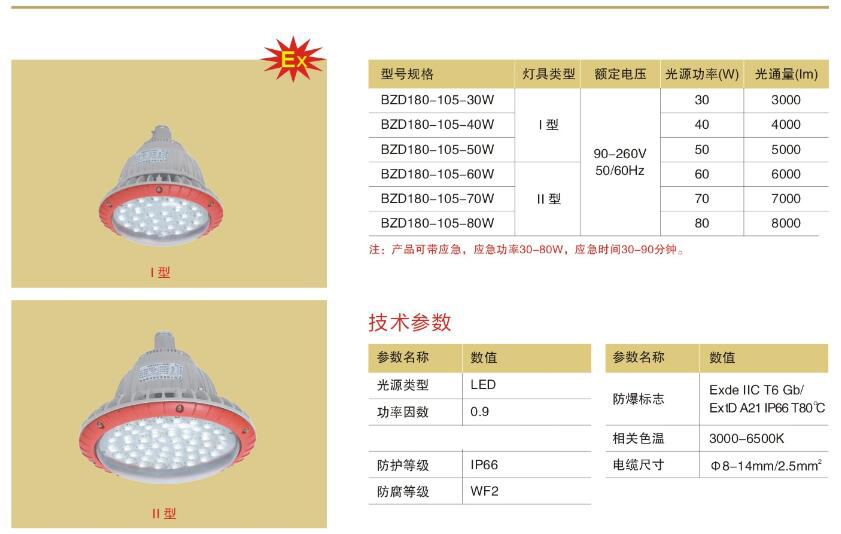 杭州BZD180-105系列防爆免维护LED照明灯(IIC)