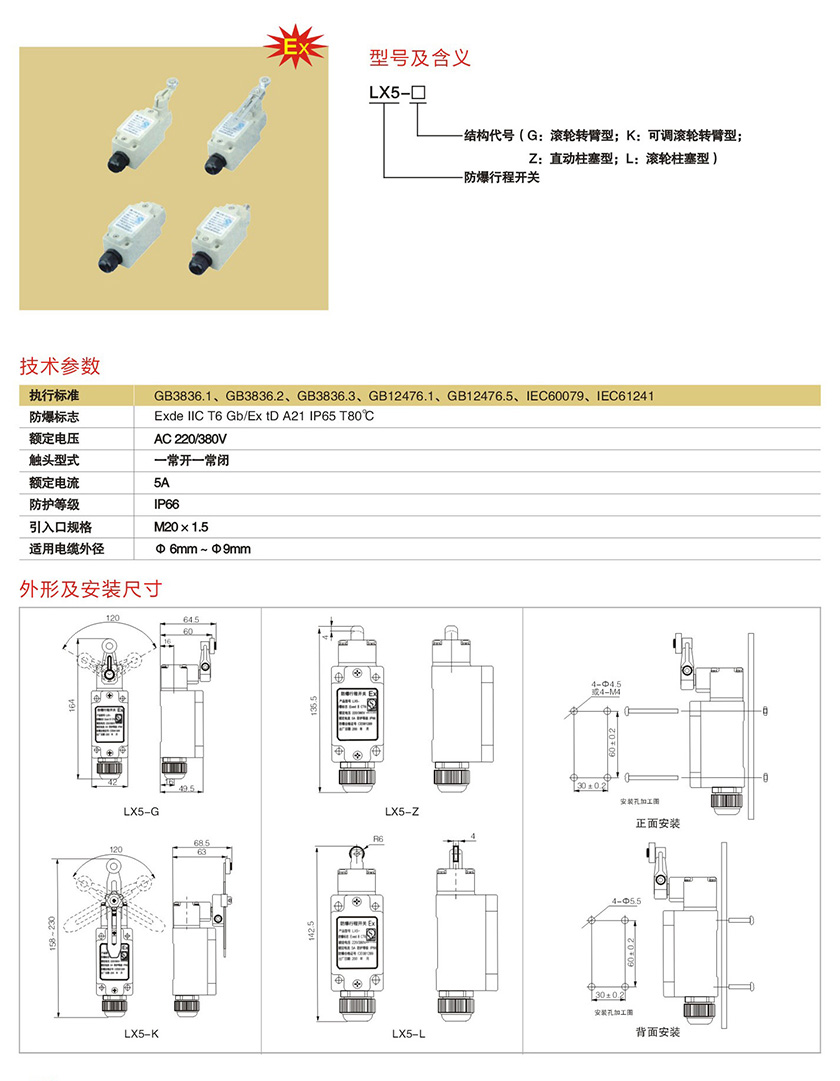 LX5系列防爆行程开关(IIB、IIC)