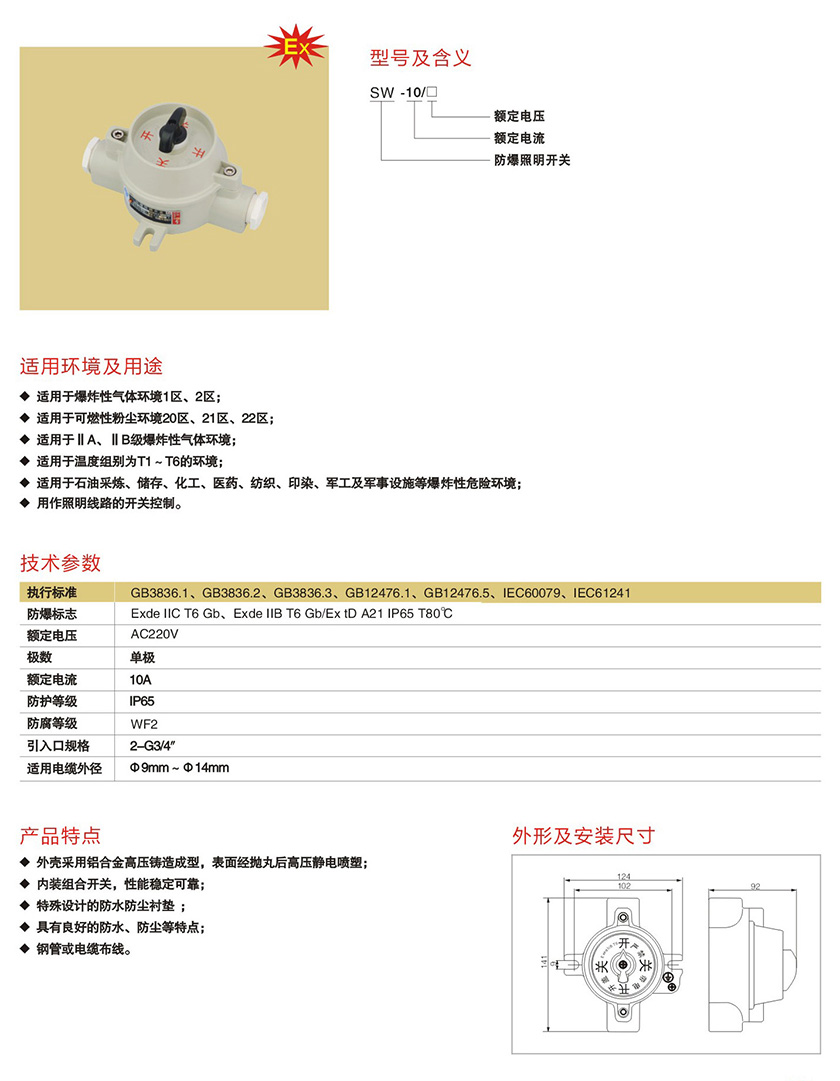 SW-10系列防爆照明开关(IIB、IIC)