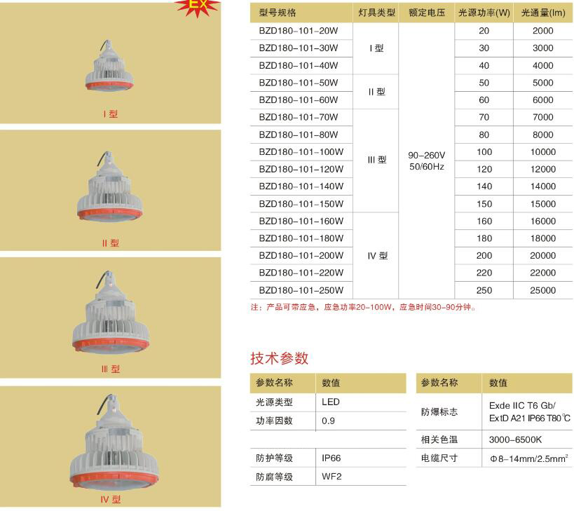 免维护LED防爆照明灯BZD180-101 Ⅳ型