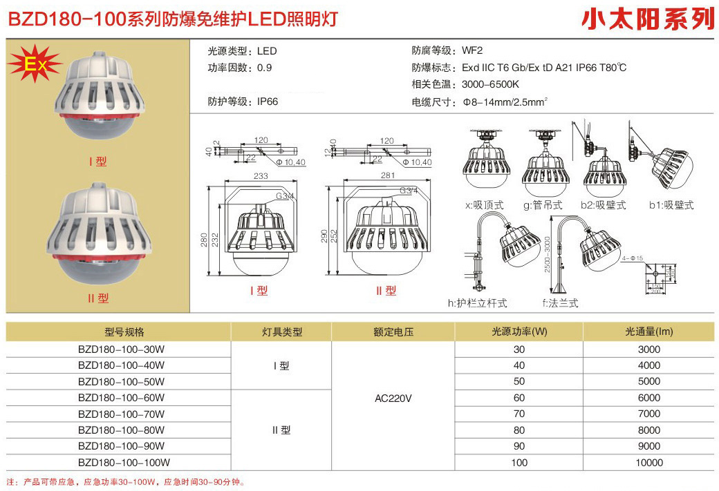 湖州免维护LED防爆照明灯BZD180-100 Ⅰ型