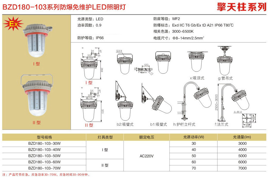湖州免维护LED防爆照明灯BZD180-103 Ⅰ型