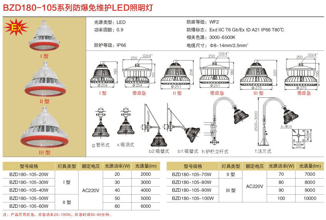 湖州免维护LED防爆照明灯BZD180-105 Ⅲ型