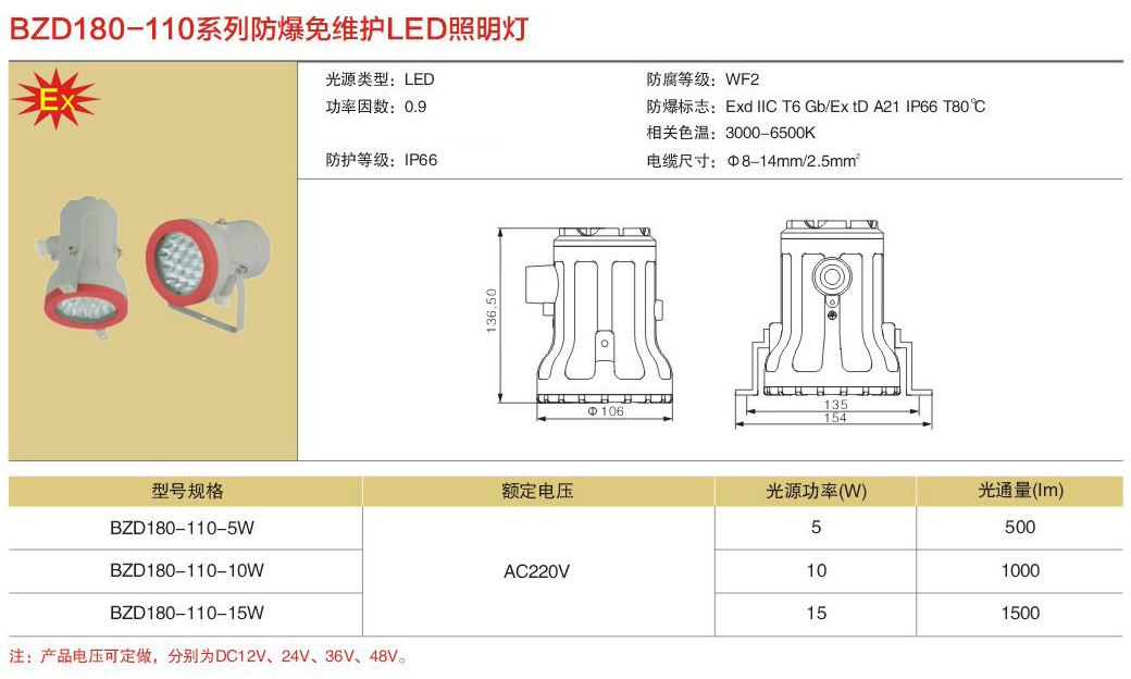 免维护LED防爆照明灯BZD180-106 Ⅳ型
