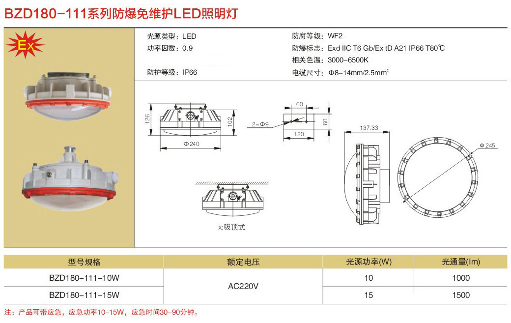 免维护LED防爆照明灯BZD180-111