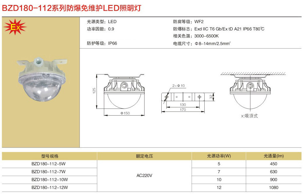 湖州免维护LED防爆照明灯BZD180-112